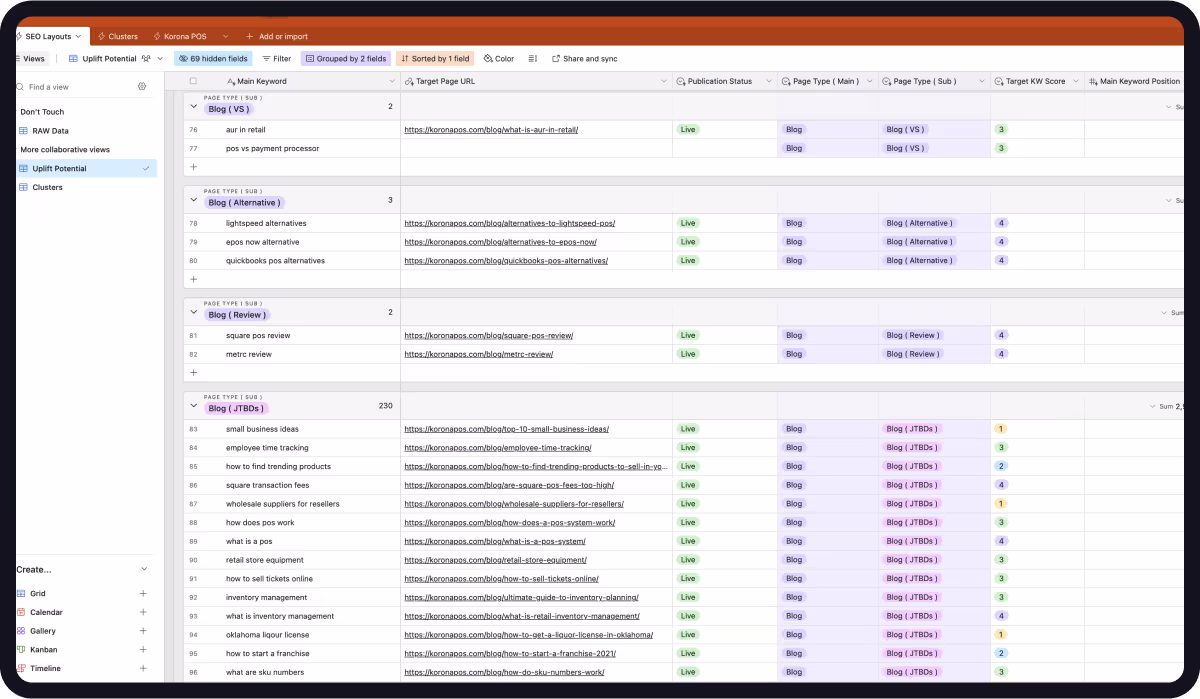 300+ B2B-specific keywords mapped by intent, volume, and priority. Structured for programmatic page generation, not manual content.